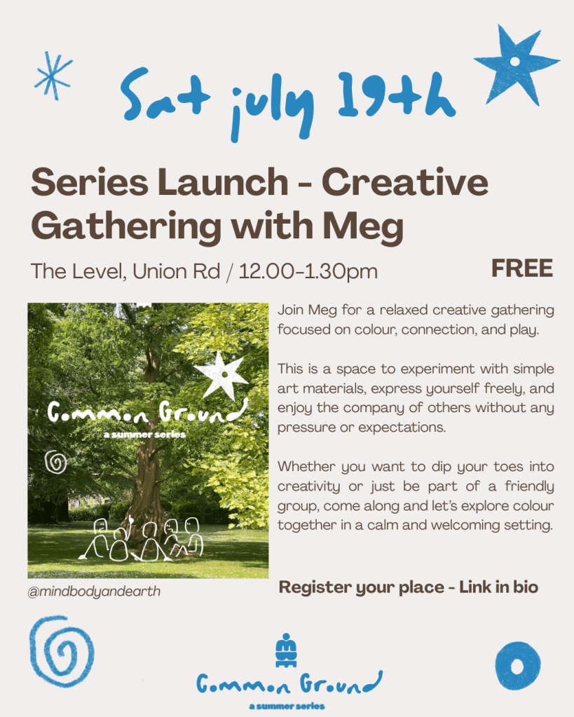 Common Ground was about sharing our gifts – creative, cultural, emotional, practical – and building relationships through presence, care, and collective creativity.